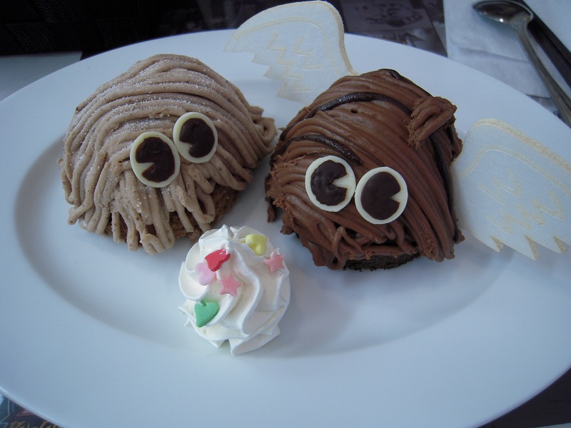 私の遠い親戚、クリボーのモンブランも食べました!キャッキャッ!